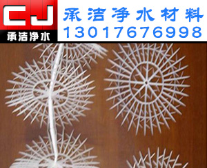 改型軟性填料采用紡搓地纖維繩串連壓有纖維絲均勻分布地塑料圓片,組成一定長(zhǎng)度地單元纖維束,改變和克服了原來(lái)的中心繩散絲打結(jié)、抗拉力不均勻、運(yùn)轉(zhuǎn)時(shí)易斷、纖維絲在水中難以橫向展開(kāi)、分布不勻、偏向、生物膜結(jié)團(tuán)、實(shí)際比表面積低、使用壽命短等弊病。經(jīng)有關(guān)部門(mén)測(cè)定,改型后的軟性填料比原來(lái)的利用率提高一倍。組裝方便等優(yōu)點(diǎn)。